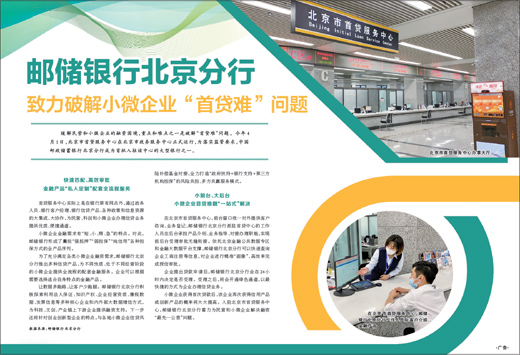 緩解民營和小微企業(yè)的融資困境,重點和難點之一是破解“首貸難”問題。今年4月1日,北京市首貸服務(wù)中心在北京市政務(wù)服務(wù)中心正式運行,為落實監(jiān)管要求,中國郵政儲蓄銀行北京分行成為首批入駐該中心的大型銀行之一。