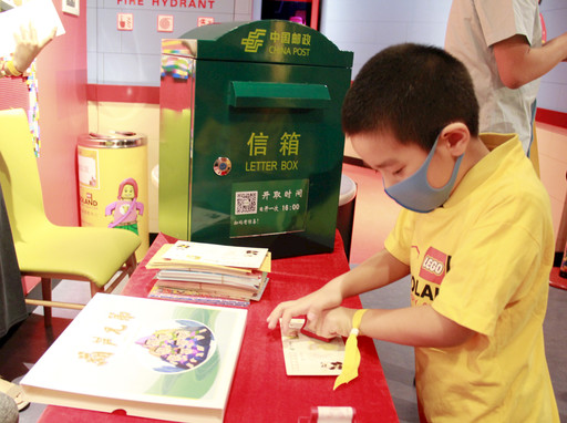 6月1日,北京郵政攜手北京樂高探索中心舉辦《動畫—葫蘆兄弟》特種郵票首發(fā)儀式。在互動環(huán)節(jié),到場的小朋友們在樂高專業(yè)人士的指導(dǎo)下完成了樂高小葫蘆作品。在北京郵政專門設(shè)置的郵品展臺上,葫蘆兄弟立體郵票書、四大名著郵票冊、明信片及豐富多彩的文創(chuàng)產(chǎn)品吸引了小朋友的目光,他們紛紛在明信片上加蓋紀(jì)念郵戳?!跤浾?nbsp; 楊光 攝影報道