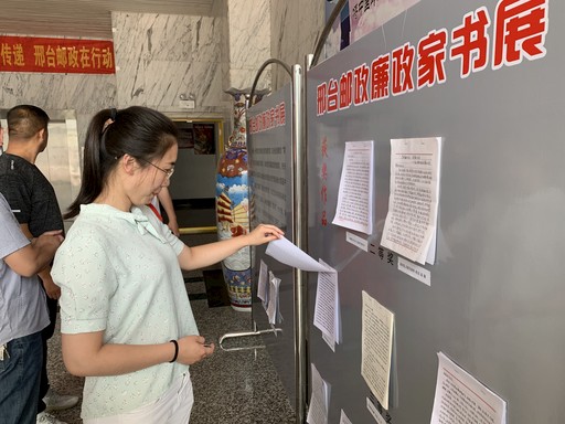 6月15日,“邢臺(tái)郵政廉政家書(shū)”展板在河北省邢臺(tái)市郵政分公司一樓大廳展出,吸引不少郵政員工前來(lái)閱讀。