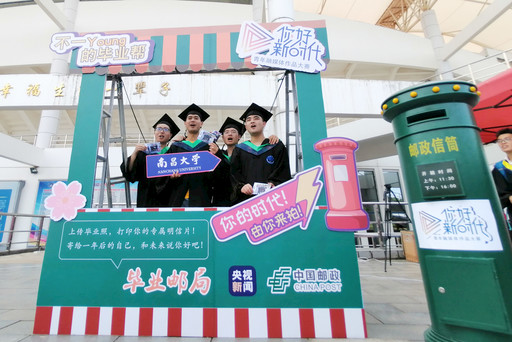 “這畢業(yè)郵局真漂亮,我要趕緊去合影?!薄案兄x郵政,在這特殊時(shí)刻記錄了我們最好的回憶。”“我會好好珍藏這張明信片,直到永遠(yuǎn)。”近日,央視新聞客戶端在線直播了南昌大學(xué)2020屆學(xué)生畢業(yè)典禮。直播中驚艷亮相的還有一個“新網(wǎng)紅”——由央視新聞、江西郵政、南昌大學(xué)共同打造的“畢業(yè)郵局”。在郵政專屬打印機(jī)前選上一張靚麗的照片,錄上一段畢業(yè)寄語,不到一分鐘帶有語音二維碼的畢業(yè)明信片就”誕生“了?! 觚埦熬?nbsp; 司小丁 攝影報(bào)道