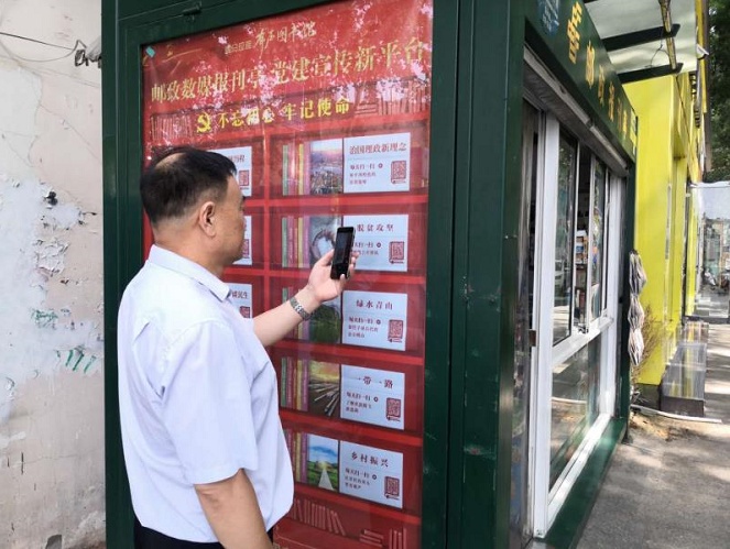 用手機(jī)掃描郵政報刊亭上二維碼,聆聽黨的聲音。南陽市七一路與梅溪路交叉口的“郵政數(shù)媒報刊亭”升級正式完成,為我市搭建了新的黨建知識學(xué)習(xí)平臺。