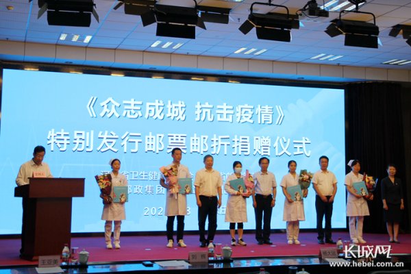 7月8日上午,河北省衛(wèi)生健康委員會(huì)、中國(guó)郵政集團(tuán)有限公司河北省分公司、河北省郵政管理局聯(lián)合舉辦《眾志成城 抗擊疫情》特別發(fā)行郵票紀(jì)念郵折捐贈(zèng)儀式,向支援湖北的河北醫(yī)務(wù)人員以及參與新冠肺炎疫情防控工作的先進(jìn)單位和個(gè)人捐贈(zèng)郵折2300個(gè)、個(gè)人抗疫紀(jì)念張606個(gè)。