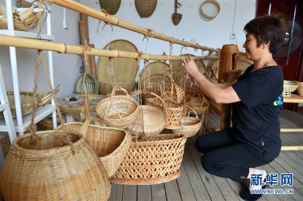 店員在田鋪大塆一家文創(chuàng)紀(jì)念品店內(nèi)整理竹編產(chǎn)品(6月12日攝)。新華社記者 李嘉南 攝