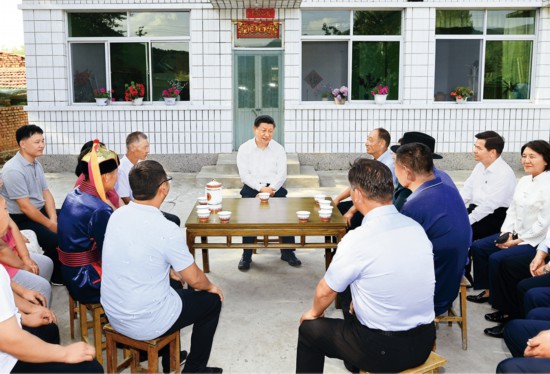2019年7月15日至16日,中共中央總書記、國家主席、中央軍委主席習近平在內(nèi)蒙古考察并指導開展“不忘初心、牢記使命”主題教育。這是15日下午,習近平在赤峰市喀喇沁旗河南街道馬鞍山村村民張國利家,同基層干部群眾代表座談交流。 新華社記者 謝環(huán)馳/攝