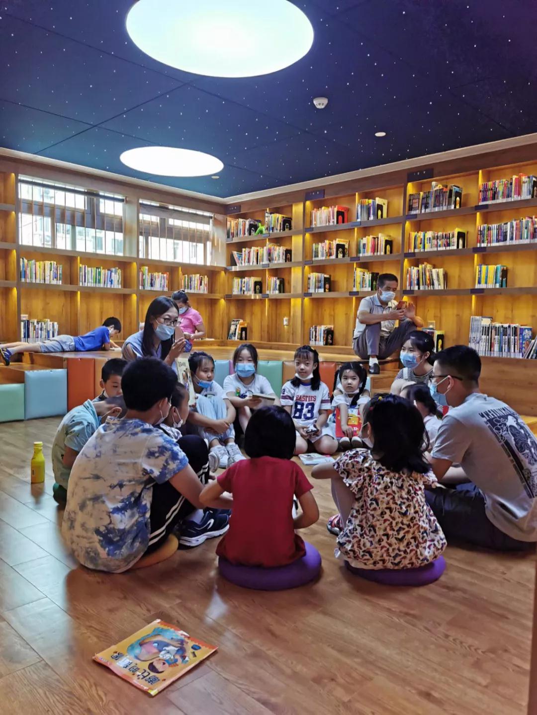 圖為濰坊社區(qū)文化活動中心二樓的星空書屋,一位故事媽媽正帶領孩子們閱讀繪本故事。求是記者 侯亞景 攝