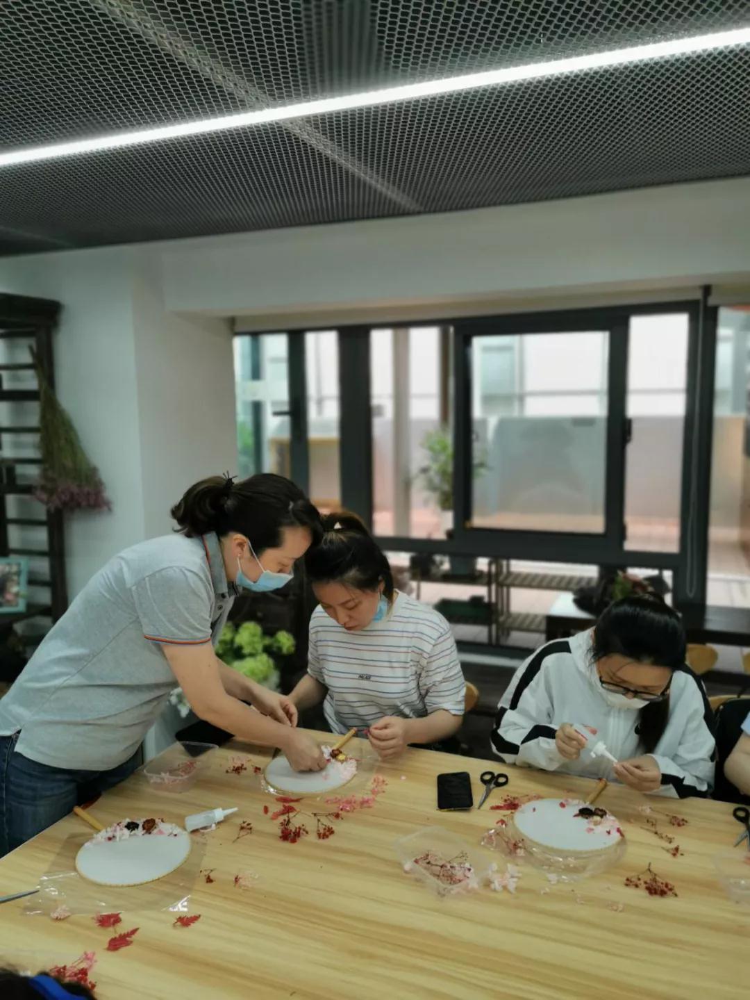 “對,這里的花朵要剪碎一點,做這個要耐心一些?!币晃焕蠋熣诮毯Mㄆ谪浌煞萦邢薰镜?0余位員工制作團扇,這是活動中心與該公司的團建項目。為實現(xiàn)項目合作多元化,活動中心主動和周邊企業(yè)共建,從以承接活動為主向樞紐型平臺良性發(fā)展,以樞紐型陣地騰籠換鳥,引入優(yōu)質(zhì)的工作室資源,不斷輻射附近樓宇白領,吸引白領成為常駐粉絲,更加高效的推進基層文化服務。