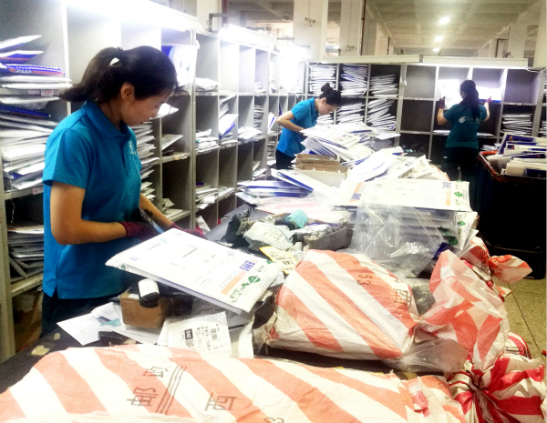 在太原郵區(qū)中心局,面對(duì)格口多、郵件量大、時(shí)限要求高等現(xiàn)狀,分揀人員采取先按省際路向分、再按經(jīng)轉(zhuǎn)關(guān)系細(xì)分的方式進(jìn)行處理,進(jìn)一步提升分揀效率。針對(duì)轉(zhuǎn)運(yùn)人員每5分鐘交運(yùn)一次待分揀郵件的情況,該局郵件預(yù)處理、普服組分揀人員應(yīng)急增援,爭(zhēng)分奪秒進(jìn)行郵件的處理趕發(fā)。業(yè)務(wù)檢查人員同步對(duì)出口的學(xué)生檔案郵件趕發(fā)情況進(jìn)行全過程督導(dǎo)管控,及時(shí)協(xié)調(diào)人員開展異常情況處理,確保各頻次郵件發(fā)運(yùn)嚴(yán)格按計(jì)劃執(zhí)行。每晚22:00,學(xué)生檔案乘上趕航郵車,通過郵航專機(jī)于次日送達(dá)全國(guó)25個(gè)省278個(gè)城市。