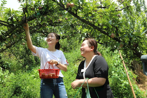7月19日,浙江省紹興市、嵊州市郵政分公司兩級郵政惠農(nóng)電商團隊把直播間搬到了嵊州市金庭鎮(zhèn)青山頭村桃形李基地,通過直播帶貨的方式,幫助當?shù)靥倚卫罘N植戶開展“線上直播+線下團購”銷售。當天,累計銷售桃形李2000多單,銷售量超過5000公斤。今年以來,嵊州市分公司克服疫情影響,積極為當?shù)剞r(nóng)民合作社提供“直播+寄遞+電商”多維度服務(wù),助力當?shù)剞r(nóng)產(chǎn)品銷售。圖為郵政工作人員與當?shù)貙I(yè)合作社負責人一起在做桃形李采摘的直播?!跤釀潘?nbsp; 王剛 攝影報道