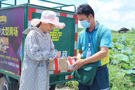 7月22日,是我國農(nóng)歷的大暑節(jié)氣。近日,廣西壯族自治區(qū)貴港市氣溫持續(xù)攀升,最高溫度達37攝氏度。為了把郵件及時、快速、準確地送到群眾手中,郵政員工在炎炎烈日下,電話不離手,腿腳不停歇,確保郵件安全送達。圖為湛江鎮(zhèn)郵政支局投遞員到荷花田里送郵件。 □覃東新 攝影報道