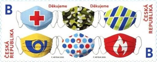 5月4日,馬恩島郵政發(fā)行一套8枚《共渡時艱》郵票,鼓勵民眾以團(tuán)結(jié)、關(guān)愛和正能量抗擊全球范圍內(nèi)的新冠肺炎疫情。8枚郵票的主題分別為:愛心、信仰、關(guān)愛、同情、感恩話語、社區(qū)、工作和科學(xué)技術(shù);阿聯(lián)酋郵政于5月10日發(fā)行“致敬抗擊新型冠狀肺炎英雄”小型張;烏拉圭郵政于5月13日發(fā)行《抗擊新型冠狀肺炎》郵票;烏克蘭郵政于5月29日發(fā)行“抗擊新型冠狀肺炎”郵票;6月24日,捷克郵政發(fā)行一套2枚《口罩》普通郵票,向抗疫一線的工作人員表示感謝。