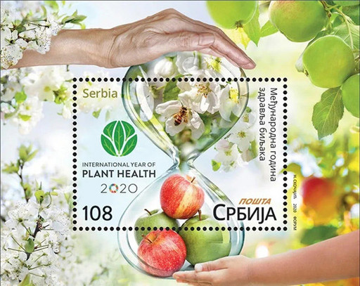 為提高大眾和政策制定者對植物健康重要性的認(rèn)識,以實現(xiàn)可持續(xù)發(fā)展目標(biāo),2020年定為“國際植物健康年”。在第二季度中,不少國家都發(fā)行了“國際植物健康年”郵票,如吉爾吉斯斯坦郵政和塞爾維亞郵政分別于4月4日和4月22日發(fā)行;韓國郵政的郵票圖案為因健康植物而美好的自然環(huán)境,整張內(nèi)含郵票16枚,邊紙圖案為植物莖葉;拉脫維亞郵政的郵票以開花的植物與拉脫維亞文版IYPH標(biāo)志為圖案,整張內(nèi)含郵票10枚,上下各5枚對倒印制。