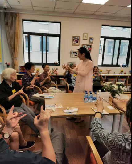 “蘭花指,蘭花掌,蘭花拳。好,加大難度,一個(gè)手蘭花指,一個(gè)手蘭花掌……”在知樂認(rèn)知癥家庭支持中心,昆曲閨門旦演員趙津羽正在向認(rèn)知障礙癥老人指導(dǎo)簡(jiǎn)單的手指動(dòng)作。