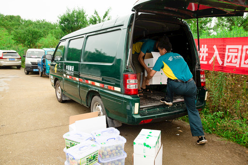 郵車開到田間地頭,果子直接上車,快速運(yùn)往郵件處理中心。
