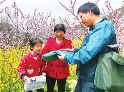 鄉(xiāng)郵員切實履行郵政普遍服務的神圣職責,為偏僻山鄉(xiāng)的老百姓送去包裹和小學生《學習方法報》。□楊德盛 攝