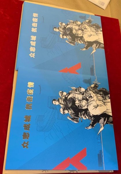 贈(zèng)送的《眾志成城 抗擊疫情》郵票郵折將支援湖北的醫(yī)療隊(duì)員抗疫照片制成了肖像郵票紀(jì)念張,匯同一整版抗疫郵票和絹質(zhì)首日封制作成精美的郵折,贈(zèng)送給奮戰(zhàn)在抗擊疫情一線的醫(yī)務(wù)工作者,表達(dá)對他們勇敢、堅(jiān)強(qiáng)、奉獻(xiàn)精神的敬佩之情。每個(gè)郵折都是唯一編碼,具有特殊的紀(jì)念意義。