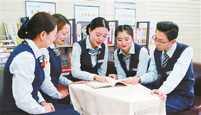 西寧市郵政分公司楊家寨支局員工集中學(xué)習(xí)“鴻雁天路”精神。