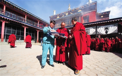玉樹藏族自治州分公司投遞員黃修云深入寺院熱情服務(wù),受到僧人稱贊。