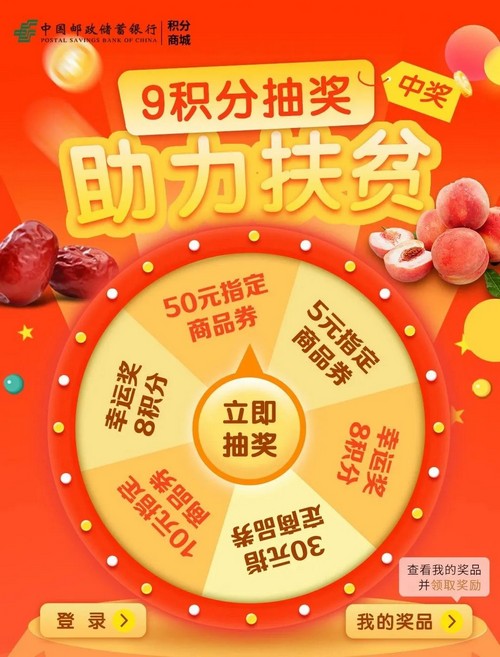 可使用9信用卡積分參與一次抽獎(jiǎng)