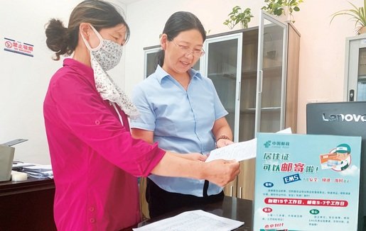 “以前快遞領(lǐng)證要自己掏錢,我能省則省,寧愿多跑一趟?,F(xiàn)在免費(fèi)郵寄,大熱天在家就能拿到居住證?!?月17日,家住江蘇省南京市江北新區(qū)泰山街道的王女士,在街道派出所綜合審批窗口辦理居住證時(shí)說。