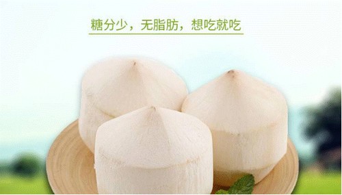 現(xiàn)在越來越多的人都提倡健康飲食,喜歡純天然的食材,這款純天然的飲料--文昌椰青正好可以滿足您對健康生活的追求。新鮮的椰水清香甘甜、潤喉止渴,雖帶有甜味卻是低糖低熱量的一款飲品。喝完椰水一定要再嘗嘗里面色如白玉、爽滑細膩的椰肉,濃濃的椰子香跟著嫩滑的椰肉在你的嘴里縈繞。
