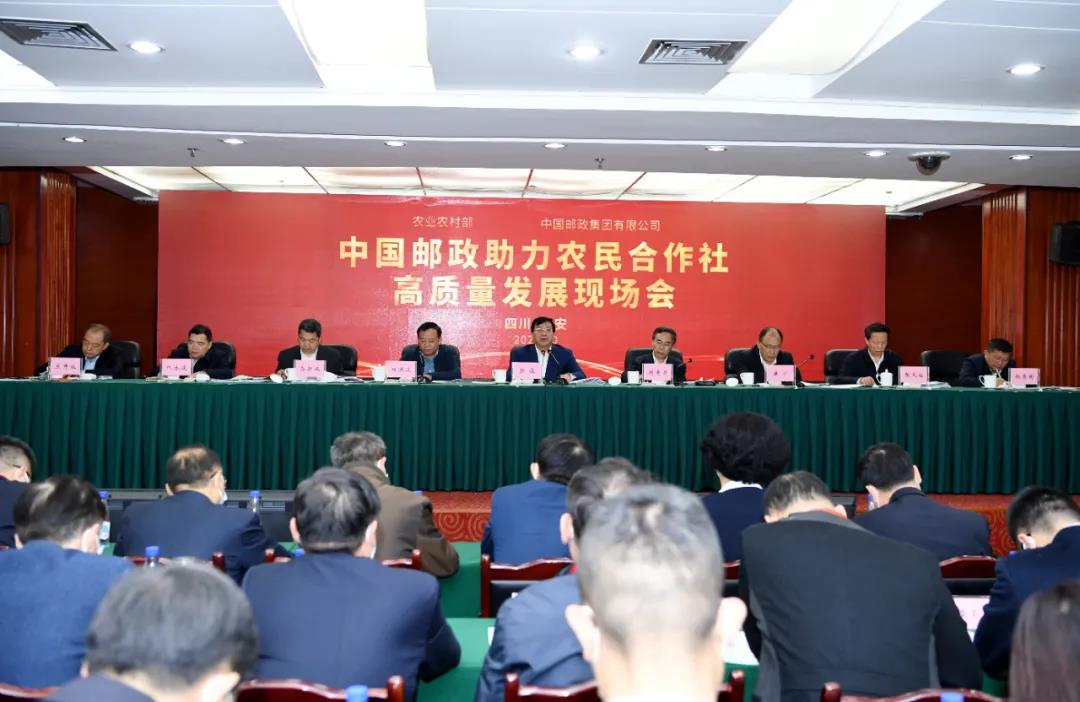 10月18日至19日,農(nóng)業(yè)農(nóng)村部和中國郵政集團有限公司在四川雅安聯(lián)合舉辦“中國郵政助力農(nóng)民合作社高質(zhì)量發(fā)展交流活動”。該活動旨在進一步總結(jié)政企聯(lián)合支持農(nóng)民合作社高質(zhì)量發(fā)展的主要做法,交流彼此優(yōu)秀經(jīng)驗,明確下階段重點工作。四川省人民政府副省長、省委農(nóng)村工作領(lǐng)導(dǎo)小組副組長楊洪波在活動上致辭,中央農(nóng)村工作領(lǐng)導(dǎo)小組辦公室副主任、農(nóng)業(yè)農(nóng)村部黨組副書記、副部長韓俊,中國郵政集團有限公司黨組書記、董事長劉愛力出席活動并講話。中國郵政集團有限公司副總經(jīng)理康寧,中國郵政集團有限公司副總經(jīng)理、中國郵政儲蓄銀行股份有限公司行長郭新雙出席活動。