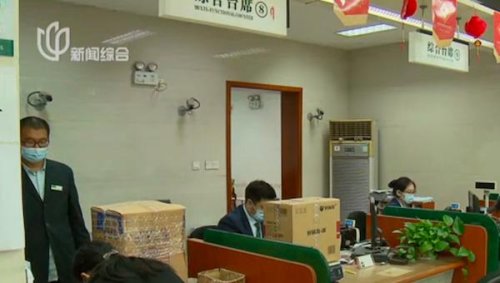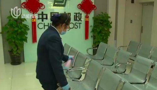 這家網(wǎng)點(diǎn)有銀行儲(chǔ)蓄業(yè)務(wù)和郵件寄遞服務(wù),為了防止病毒傳播,所有等待郵寄的包裹先在門外接受細(xì)致的消殺。