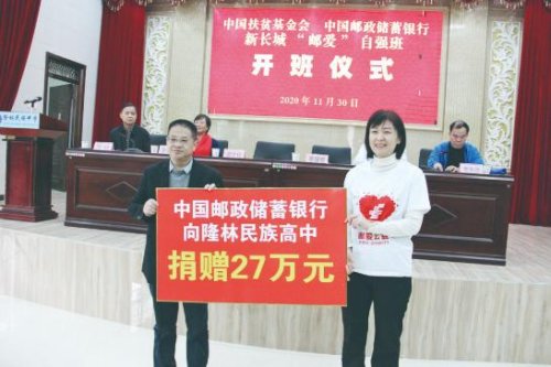中國郵政儲蓄銀行向隆林民族高中捐贈27萬元。