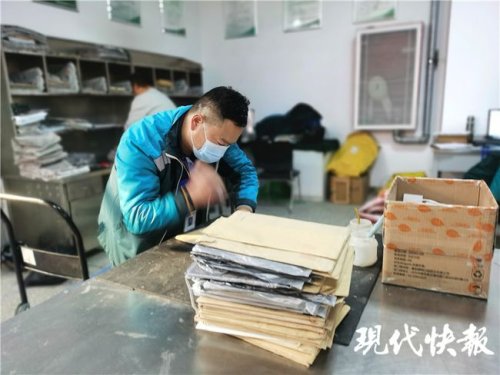 12月8日上午9點(diǎn),現(xiàn)代快報(bào)記者走進(jìn)宿遷市郵政城區(qū)分公司時(shí),李元明正忙著給一批已經(jīng)分類好的郵件和包裹蓋上郵戳?!芭九九九尽彪S著一聲聲脆響,摞得小山一樣高的包裹很快就被處理好,速度快得像是開(kāi)了三倍速一般。