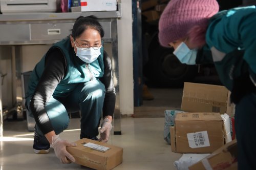 1月7日,韓金花在投遞包裹。