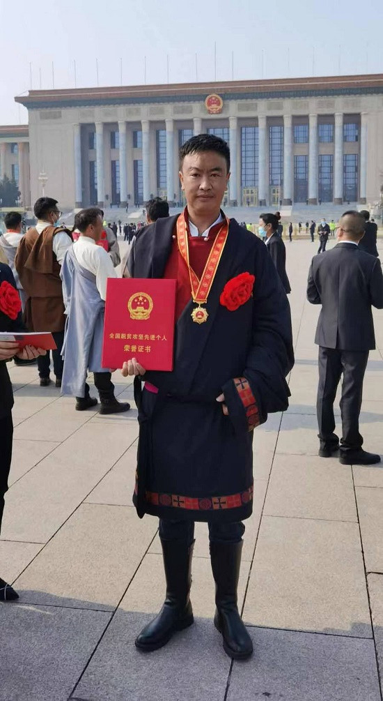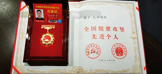 2月25日,全國脫貧攻堅總結表彰大會在北京人民大會堂隆重舉行。大會上,中國郵政儲蓄銀行青海省分行班瑪縣支行行長、果洛州瑪沁縣下大武鄉(xiāng)年扎村第一書記扎西鬧吾榮獲“全國脫貧攻堅先進個人”稱號。