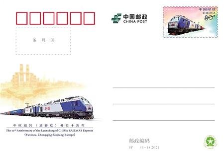 3月19日,中國(guó)郵政將發(fā)行今年首套紀(jì)念郵資片——JP259《中歐班列(渝新歐)開(kāi)行十周年》紀(jì)念郵資明信片,全套一枚,面值80分,預(yù)計(jì)郵局售價(jià)1.20元。