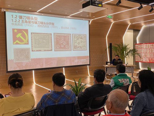 4月22日,閔行區(qū)第5季郵票黨課在閔行經(jīng)濟(jì)技術(shù)開發(fā)區(qū)開講,原上海汽輪機(jī)廠副總工藝師、高工吳天明為聽眾帶來的是《黨徽、黨旗和黨章》,他的另一重身份是上海市集郵協(xié)會(huì)學(xué)術(shù)委員會(huì)委員、極限集郵研究會(huì)會(huì)長(zhǎng)、閔行區(qū)職工集郵愛好者協(xié)會(huì)副會(huì)長(zhǎng)。