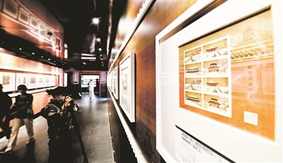 第二單元“美輪美奐”展現(xiàn)紫禁城主體建筑群,輔以郵票設計原稿、雕刻稿、古建影像,再現(xiàn)紫禁城建筑魅力。