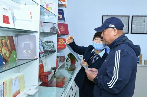 來到哈達(dá)鋪紅軍長征紀(jì)念館正門旁的哈達(dá)鋪紅色郵局,展柜上陳列的物品讓人挑花了眼。不僅有哈達(dá)鋪紀(jì)念明信片、大公報、黨史黨情圖書等,還有宕昌縣本地特產(chǎn)中藥材、點心、香菇醬等產(chǎn)品。每天都有上百名游客到此,對關(guān)于長征題材的郵票、明信片和首日封等郵品產(chǎn)生了濃濃的興趣。一名來自內(nèi)蒙古的游客一進(jìn)來就被展柜上的明信片吸引得移不開眼,他選購了一枚明信片,高興地說道:“我要把明信片寄回去,留下這份珍貴的哈達(dá)鋪記憶。”與此同時,主題郵局內(nèi)一場線上直播活動正在如火如荼地進(jìn)行中。