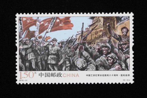 2016年10月22日,《中國工農(nóng)紅軍長征勝利八十周年》紀念郵票發(fā)行,6枚郵票圖案分別為:長征出發(fā)、遵義會議、四渡赤水、過雪山草地、勝利會師、緬懷先烈不忘初心走好新的長征路。
