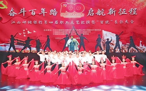 近日,郵儲(chǔ)銀行江西省分行在江西藝術(shù)中心大劇院舉辦了“奮斗百年路啟航新征程”全省郵儲(chǔ)銀行第四屆職工文藝匯演暨“百優(yōu)”表彰大會(huì)。江西省分行對(duì)20個(gè)先進(jìn)基層黨組織、60名優(yōu)秀共產(chǎn)黨員和20名優(yōu)秀黨務(wù)工作者進(jìn)行表彰。該分行13個(gè)單位的職工以舞蹈、合唱、音詩(shī)畫(huà)等形式,表演了13個(gè)節(jié)目,謳歌了偉大的中國(guó)共產(chǎn)黨帶領(lǐng)全國(guó)人民艱苦奮斗、銳意進(jìn)取,開(kāi)創(chuàng)國(guó)家繁榮發(fā)展壯麗史詩(shī)的歷程和成就,展現(xiàn)了江西省分行改革發(fā)展成果以及全體干部職工朝氣蓬勃的精神風(fēng)貌。