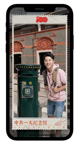 每枚明信片車票都附帶郵資,市民游客在游覽結束后便可投入郵筒寄給自己或是親朋好友,讓紅色星火得到更多傳遞。通過AR技術,市民游客只需掃描明信片上的二維碼,即可在手機上呈現(xiàn)出動感景區(qū)專線車場景和點位自拍打卡場景。