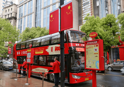 從5月25日起,“中國共產(chǎn)黨一大·二大·四大紀念館紅色專線車”正式試運行啦!這也就意味著游客市民可乘坐這輛全新的紅色雙層觀光巴士,一次打卡上海主要的紅色地標,
