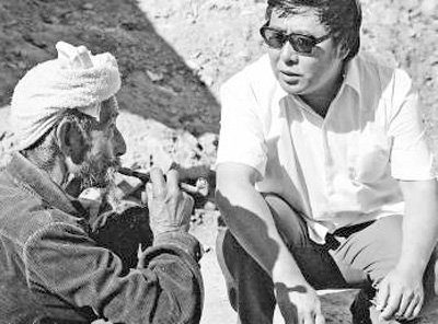 路遙(右)在陜北農(nóng)村走訪。新華社記者 姚宗儀攝