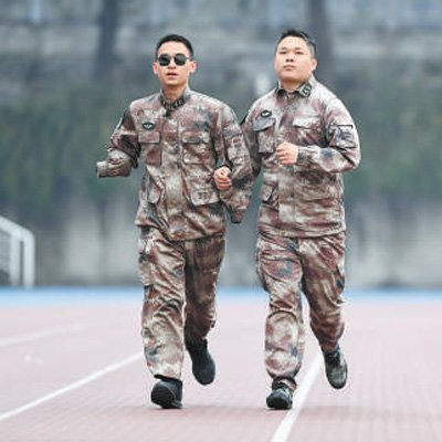 2020年1月2日,“排雷英雄戰(zhàn)士”杜富國(guó)(左)和戰(zhàn)友在陸軍軍醫(yī)大學(xué)操場(chǎng)上跑步。新華社記者 王全超 攝