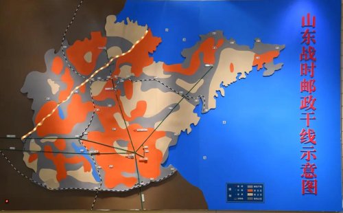 山東省戰(zhàn)時郵務(wù)總局還在各個戰(zhàn)區(qū)相繼建立了郵務(wù)管理局,并以山東交通總站的原有干線為基礎(chǔ),開辟了通往膠東、渤海、泰山、湖西、魯西、華中、淮海、蘇中及太行等12條省內(nèi)主要交通干線,總里程達17200公里,形成了縱橫交錯的戰(zhàn)時郵務(wù)通信網(wǎng)。