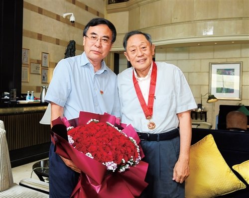 集團(tuán)公司黨組書(shū)記、董事長(zhǎng)劉愛(ài)力親切慰問(wèn)原中國(guó)郵政集團(tuán)公司總經(jīng)理、黨組書(shū)記劉安東,并代為頒發(fā)“光榮在黨50年”紀(jì)念章。
