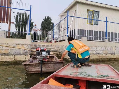上午10點半,已經被汗水濕透衣服的王少朋回到了丁樓村碼頭。簡單和碼頭上的村民寒暄兩句,甚至都來不及坐下喝口水,王少朋就收起船錨出發(fā)了。因為時間不容許他耽擱太久,接下來的四個村子,全都在水上,龔莊和柳溝相距較近,但是王蘇白和建閘距離較遠,從王蘇白村到建閘村,要在湖上航行整整一個半小時。