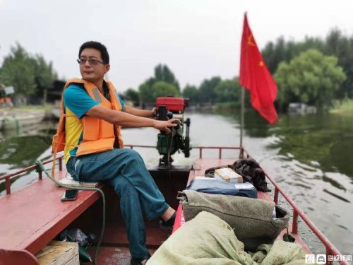 下午1點半,郵船抵達了最后的目的地建閘村。把最后一份報紙送到了建閘村村委會,王少朋一天的投遞任務結束了。簡單和村委會的工作人員寒暄幾句,王少朋就迫不及待的返航了。