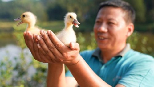 9月28日,雙峰郵政所的郵遞員吳文清在雙峰鎮(zhèn)的一家養(yǎng)殖基地幫一名村民選購鴨幼崽。
