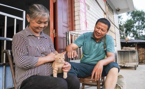 9月28日,雙峰郵政所的郵遞員吳文清(右)為村民派送一只貓咪。這名獨(dú)居的村民此前委托吳文清為她選購一只寵物貓作伴。