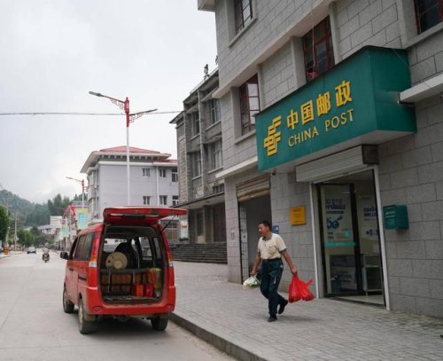 10月6日,雙峰郵政所的郵遞員吳文清即將離開郵政所,為村民送貨。