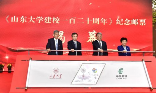 10月15日上午,《山東大學(xué)建校120周年》紀(jì)念郵票首發(fā)式在山東大學(xué)中心校區(qū)舉行。中國(guó)郵政集團(tuán)有限公司黨組書(shū)記、董事長(zhǎng)劉愛(ài)力,山東大學(xué)黨委書(shū)記郭新立、校長(zhǎng)樊麗明、常務(wù)副校長(zhǎng)王琪瓏出席儀式,山東大學(xué)黨委副書(shū)記張永兵主持儀式。劉愛(ài)力,郭新立,樊麗明,山東省郵政分公司黨委書(shū)記、總經(jīng)理韓廣岳,共同為《山東大學(xué)建校120周年》紀(jì)念郵票揭幕。