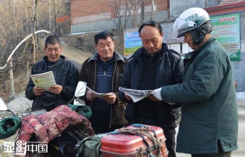 董乃軍(右)在大馬峪村投遞,他的摩托車一停,會吸引來許多村民。盡管作為一名農村郵遞員待遇不高,但他已經成為這條郵路上不變的風景,山里的村民更是離不開他,他說:“我很熱愛自己的這份投遞工作,我舍不得山里的人們,我會一直沿著這條郵路走下去?!?/p>