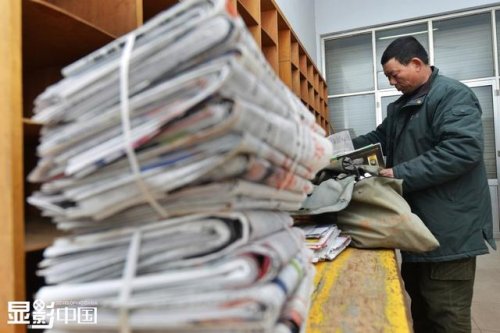 董乃軍把郵件整理好準備出發(fā)投遞,他每天要投遞300多份郵件,大大的郵包沉甸甸的。